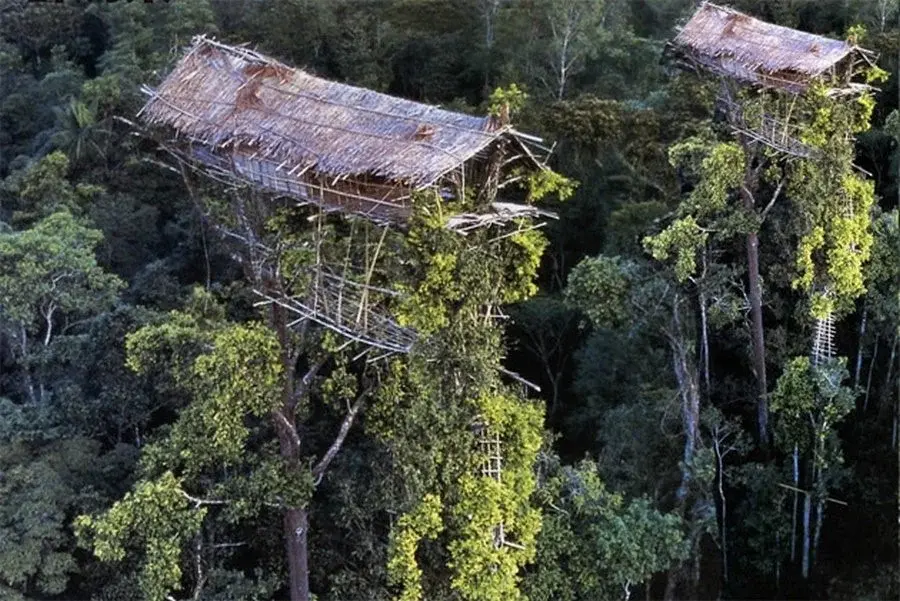 Да, да, они живут практически в небоскребах, на высоте от 10-15 метров до 45-50, в зависимости от высоты дерева на котором построен дом. Почему так, неизвестно. Сами они объясняют, что это защита от неких злых духов, которые почему то не могут лазить по деревьям.