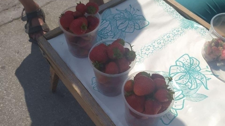 Несмотря на запреты торговать на улице, садоводы традиционно продают ягоду на проспекте Социалистический напротив кинотеатра "Мир", рядом с торговым центром "Гулливер" и у Нового рынка. На торговлю выходят обычно с 10-11 часов утра до 17-18 часов вечера. Но около ТЦ "Гулливер" в 12:30 некоторые садоводы только начинают раскладывать товар — говорят, только-только приехали с садов и предлагают "самое свежее по хорошей цене".