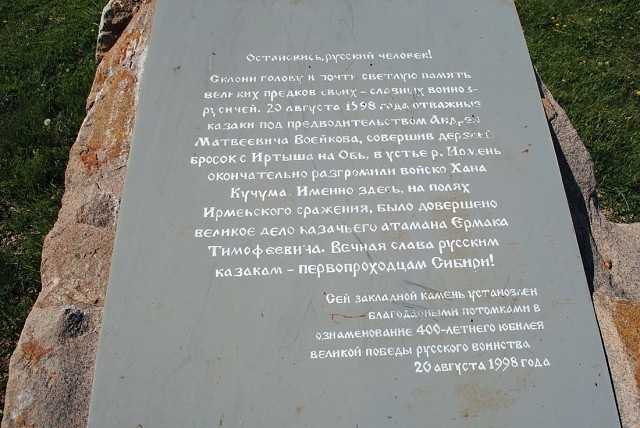 Здесь, в слиянии реки Ирмень с Обью 20 августа 1598 года произошло решающее сражение с ханом Сибирской орды, Кучумом, куда Андрей Матвеевич Воейков загнал войско Кучума из его запасной столицы в Убинском. Войско хана было сброшено вместе с конями с высокого берега реки. Хану удалось уйти, убили его чуть позже, где-то на Алтае. Но это был решающий разгром, с которого началось заселение Сибири людьми из России).