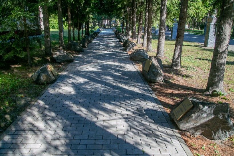 Не буду долго задерживаться на этом районном центре, он красивый. Особенно в нём мне нравится аллея незабытых деревень. Мемориальный камень из того самого мрамора, с того самого карьера из Абрашино. У каждой исчезнувшей деревни свой камень с табличкой. К ним приходят люди, которые жили там до затопления или так называемого укрупнения. Люди помнят. Теперь и молодые тоже.