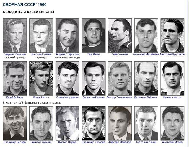 1960 год. Первый финал прошёл в Париже между СССР и Югославией в 1960 году. Победу праздновала сборная СССР, забив победный мяч в дополнительное время. Счёт матча СССР - Югославия 2:1. Эта победа сборной СССР является её лучшим достижением на первенствах Европы.