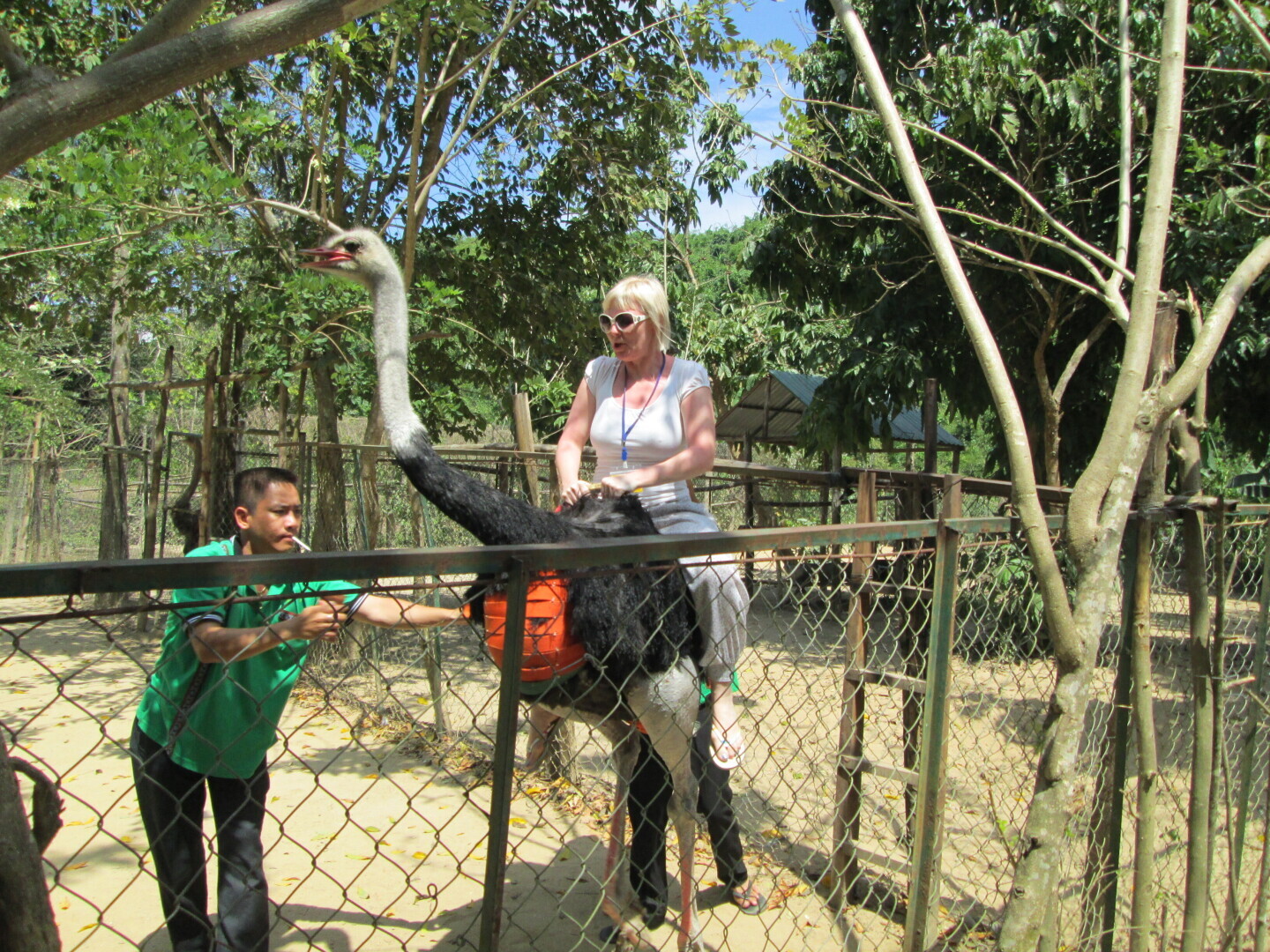 Что интересно, страусов вообще бесполезно дрессировать. Так называемая девичья память это еще что-то, если сравнивать с ногастой птицей. 3-4 секунды, и страус уже про все позабыл. Возможно, поэтому и жить им как-то от этого легче? Во время одной из экскурсий нам предложили за отдельную плату, конечно, прокатиться на этих пернатых. Да вот незадача: максимальная масса наездника не должна была превышать 70 кило. Куда там было лезть с моим центнером! Впрочем, нам рассказали, что неподалеку катают и более тучных дяденек. Правда, на двух страусах сразу. Но мне как-то не очень хотелось выступать в роли такого любителя экстрима. Хватило за глаза слона с безбашенным погонщиком, который всю дорогу лупил его чем-то вроде багра и объяснял, что он молодой и его, дескать, надо учить. Но ни при мне же!