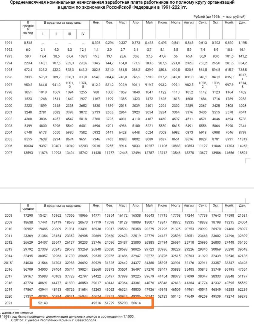 Вернемся к Росстату и его цифрам. Вот, посмотрите таблицу, в самом низу данные за 2021 год:
