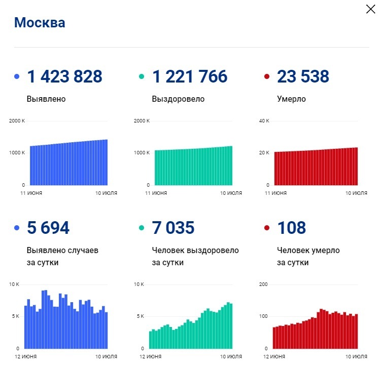Статистика коронавируса в Москве на сегодня 10 июля