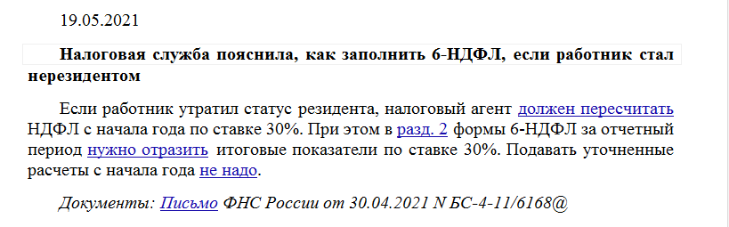 Налоговая служба пояснила, как заполнить 6-НДФЛ, если работник стал нерезидентом.