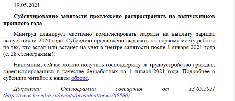 Субсидирование занятости предложено распространить на выпускников прошлого года.