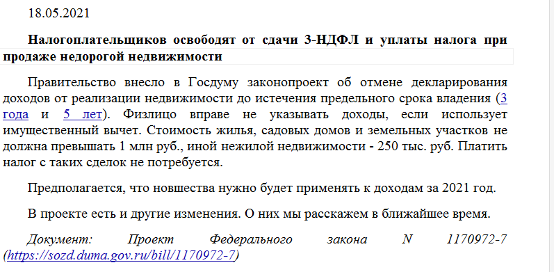 Налогоплательщиков освободят от сдачи 3-НДФЛ и уплаты налога при продаже недорогой недвижимости.