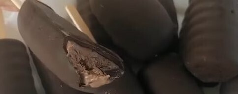 Холодное (замёрзшее) мороженое окунаем в растопленный шоколад, даём лишней глазури стечь - и через несколько секунд у нас всё готово! Из пол-литра молока получается гора мороженого! Целыми днями такое бы ел!