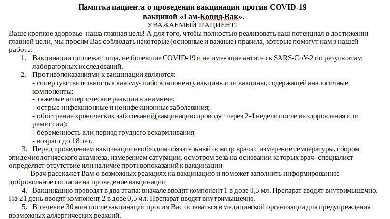 Всем россиянам, сделавшим прививку от COVID-19, выдают специальную памятку о возможных побочных эффектах и правилах безопасного поведения после вакцинации. В разных медицинских учреждениях памятки выдают на бумаге или в электронном виде отправляют на e-mail.
