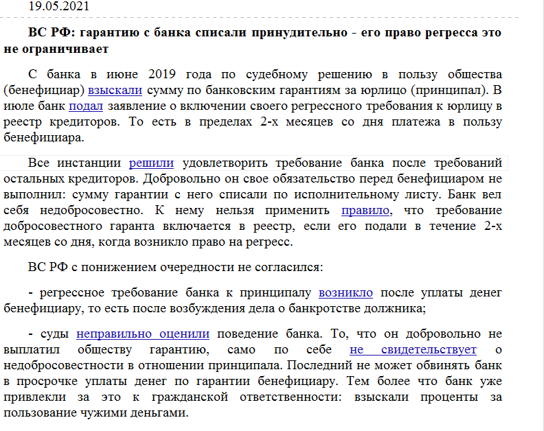 ВС РФ: гарантию с банка списали принудительно - его право регресса это не ограничивает.