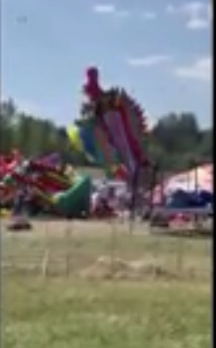 В Белоруссии сильный ветер поднял в воздух надувные аттракционы вместе с детьми.