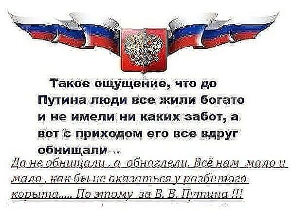 Сергей. Сочи. Уж более чем нагадил царь со своими пескотрепами за 20 лет правления не один Генсек не нагадил. Те хоть худо-бедно созидали,а эти Шреки-разрушители,созидать не способны,способны только ломать,крушить и казну дерибанить в свои карманы. И чем коммунисты СССРовские хуже предыдущей ельцинской и нынешней царевой власти??? Царь то будучи КГБэшником тоже комунякой был. Перевертыш-обувщик.