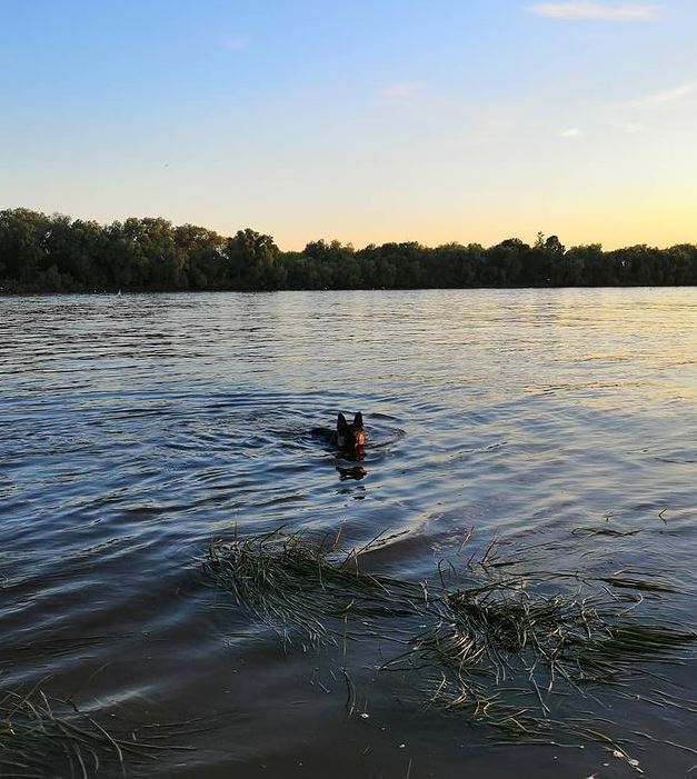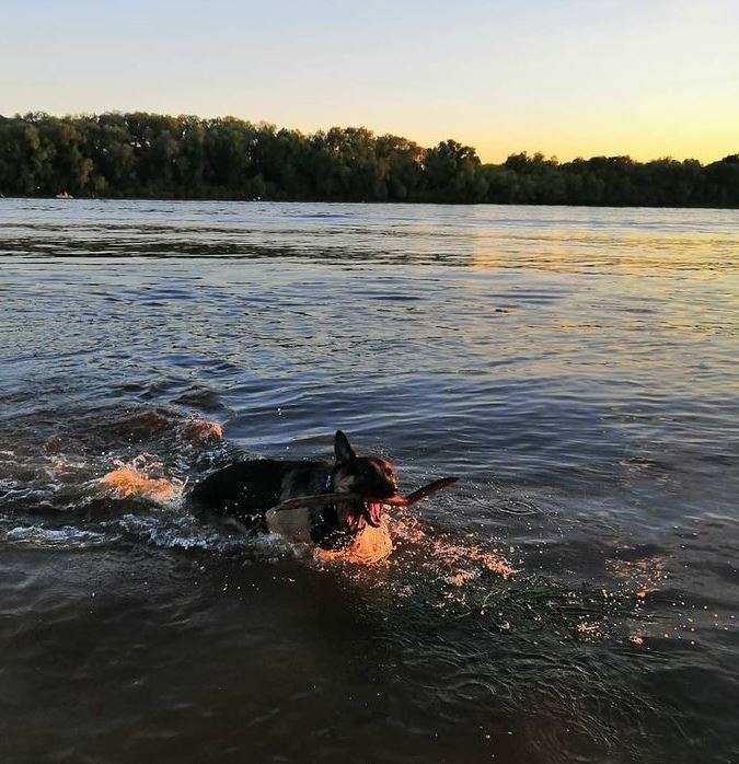 3️⃣ Палки. Это лично наш способ. На прогулки я не беру игрушки, потому что Мухтар их на улице благополучно теряет. Он видит палку, и игрушку благополучно выпускает из зубов. Я кидала Мухтар палку сначала недалеко, чтобы он сначала просто перестал бояться заходить в воду, а затем увеличивала расстояние полёта палки.