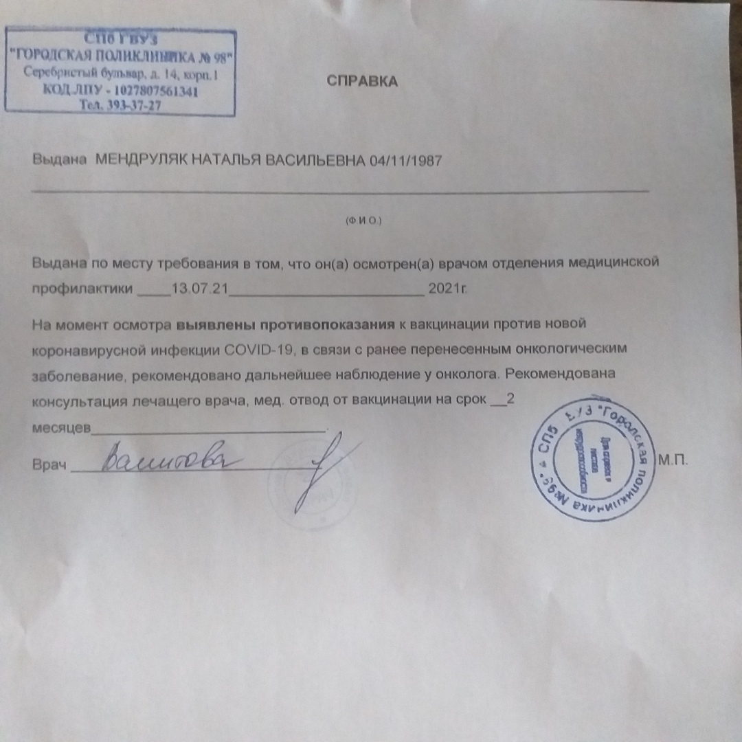 судя по тому, что я слышу, медотводы не оформляют практически никому. Даже людям с высоким титром антител отказывают. В поликлинике сообщили, что и обследование перед вакцинацией не делают. Ибо Роспотребнадзор заявил, что оно вовсе необязательно.