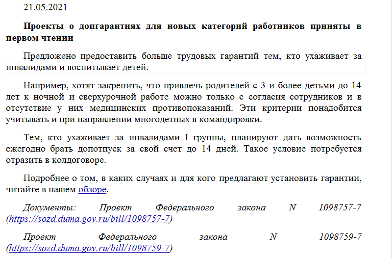 Проекты о допгарантиях для новых категорий работников приняты в первом чтении.