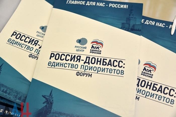 Столица Донецкой Народной Республики приняла у себя масштабный форум «Россия-Донбасс: единство приоритетов» 15 июля. В форуме приняли участие около 800 человек из Донецкой и Луганской Народных Республик, Российской Федерации, Абхазии и Южной Осетии. Среди участников – представители руководства ДНР, ЛНР, ВПП «Единая Россия»: Председатель Правления Союза добровольцев Донбасса, Герой ДНР, кандидат в депутаты Государственной Думы РФ по региональным спискам партии «Единая Россия» от Ростовской области Александр Бородай, первый заместитель председателя комитета Государственной Думы Федерального Собрания РФ и по делам СНГ, евразийской интеграции и связям с соотечественниками Виктор Водолацкий, член комитета Государственной Думы по делам СНГ, евразийской интеграции и связям с соотечественниками Артем Туров, депутат Государственной Думы Федерального Собрания РФ, координатор интеграционного комитета «Россия – Донбасс» Андрей Козенко, депутаты Народного Совета ДНР, главы городов и районов Республики. Также в мероприятии приняли участие политики, ученые, деятели культуры, ветераны труда, преподаватели и студенты, представители общественных организаций и движений, спортсмены, военнослужащие.