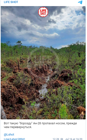 Также было обнародовано фото борозды, которую оставил после себя Ан-28. Судя по снимку, посадка была довольно жёсткой. Тем не менее, пилотам удалось не только приземлить воздушное судно, но и сделать это без потерь среди пассажиров и экипажа.
