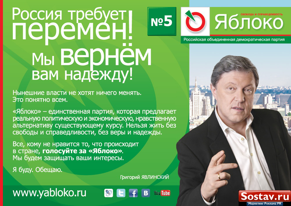 Таким образом, сегодня красивые лозунги уходят на второй план. Если западные избирательные кампании строятся на графических, цветовых и звуковых решениях, то в России это в силу особенностей характера и менталитета россиян не работает, вызывая только смех, критику и автоматическое отторжение от кандидата его потенциальных избирателей.