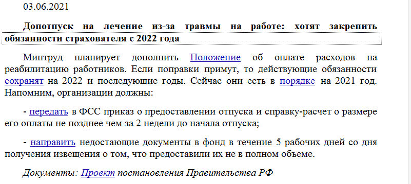 Допуск на лечение из-за травмы на работе: хотят закрепить обязанности страхователя с 2022 года.