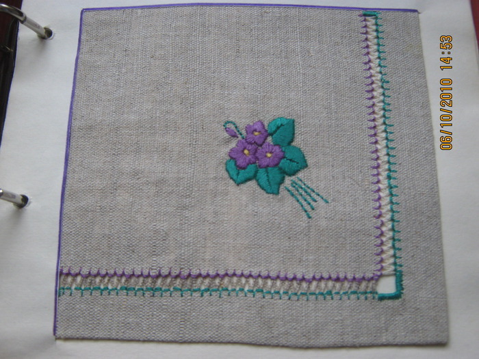 После того как выполните вышивку по периметру салфеток продёрните дорожки шириной 3 см (основа для декоративных кистей) и оформите края салфеток ажурными кистями, удалив все нити за дорожкой.