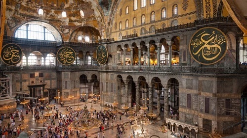 То место, где стоит собор Айя-София является сердцем древнего Константинополя, столицы древней Византии. В этом соборе произошёл раскол церквей на две ветви: Католическую и Православную. В нём крестилась первая Княгиня древнерусского государства Ольга. Когда посетите собор, то обязательно поднимитесь на второй этаж, откуда открываются особенно впечатляющие виды и посмотрите участки сохранившейся мозаики византийского периода.