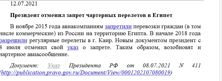 Президент отменил запрет чартерных перелетов в Египет.