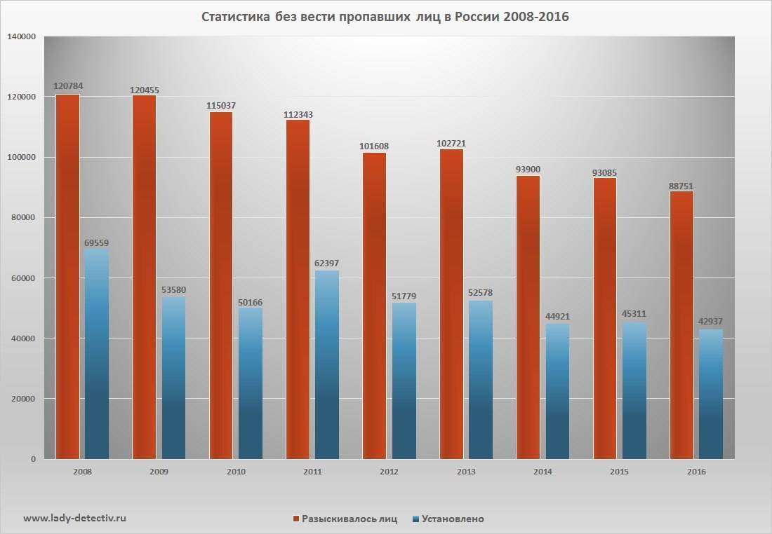 Исчезает, по данным официальной статистики, приблизительно 30 000–35 000 человек ежегодно, это население не очень большого провинциального города.
