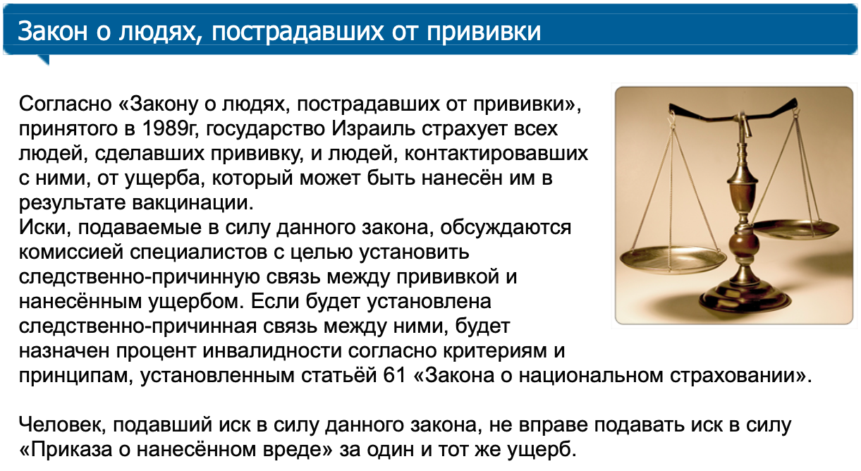 А знаете ли Вы, что в Израиле есть закон, страхующий человека, сделавшего прививку?