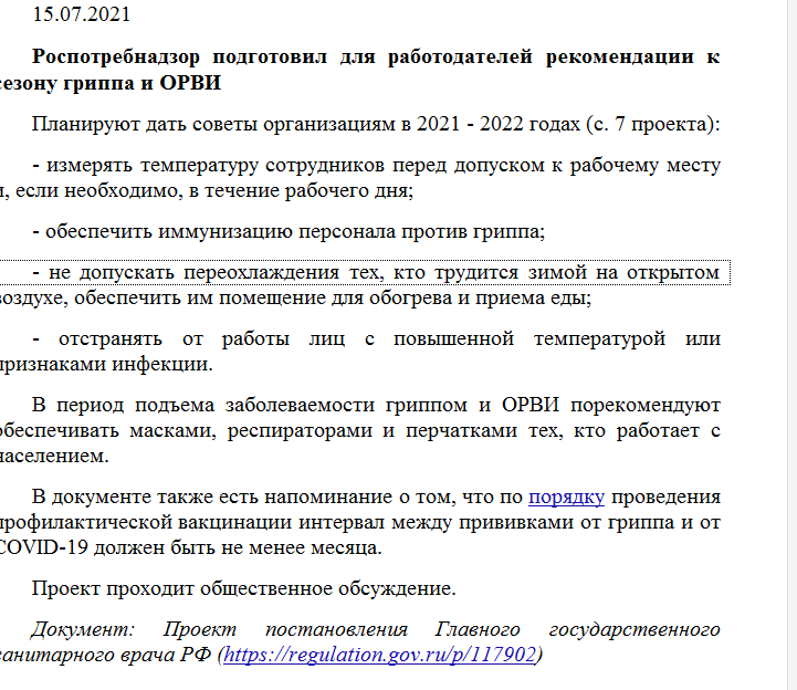 Роспотребнадзор подготовил для работодателей рекомендации к сезону гриппа и орви
