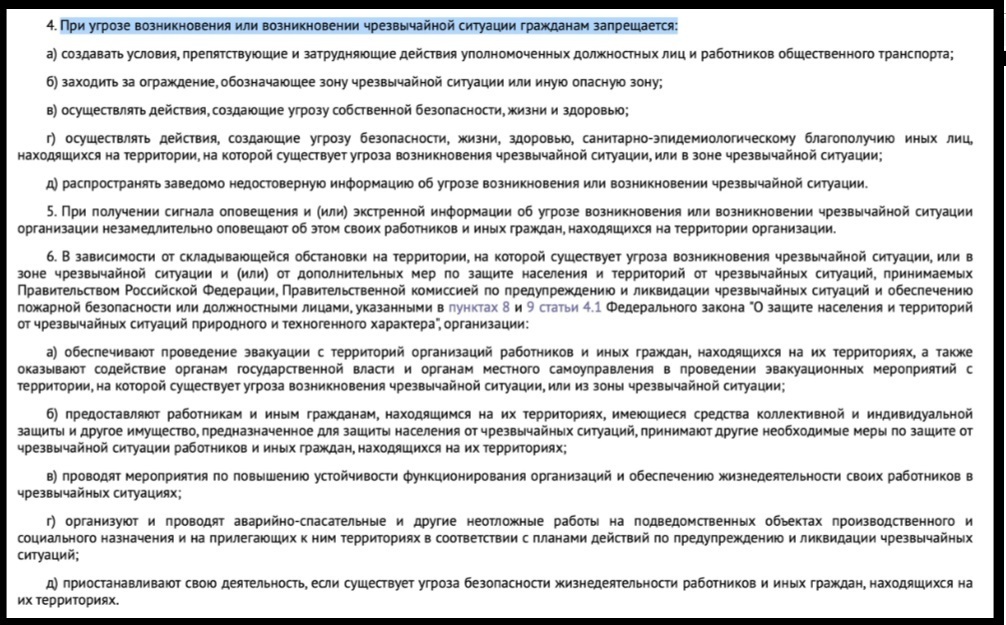 Обязанности граждан в случае введения ЧС. Новый пункт: обязанность эвакуироваться с территории на которой существует угроза, не сама чрезвычайная ситуация, а только угроза, возникновение ЧС или зоны ЧС с момента получения информации.