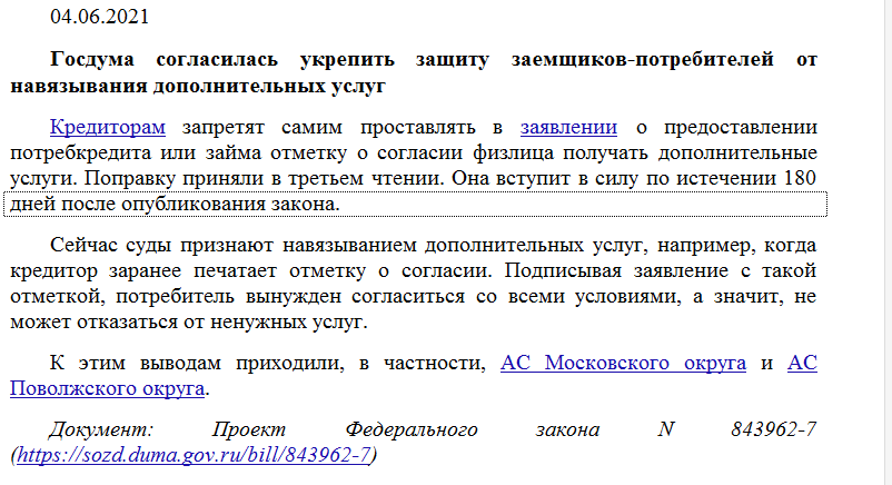 Госдума согласилась укрепить защиту заемщиков- потребителей от навязывания дополнительных услуг.