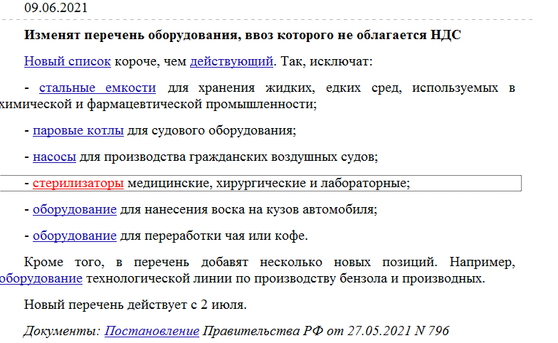 Изменят перечень оборудования, ввоз которого не облагается НДС.