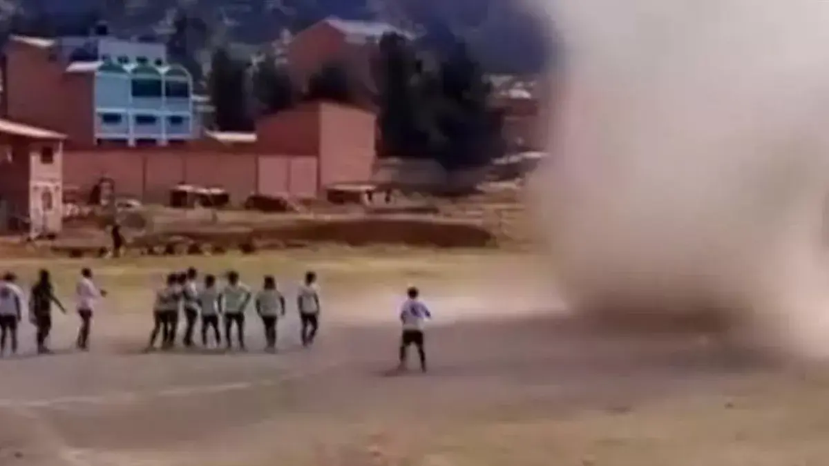 Футбольный матч любительских команд в Боливии был прерван из-за смерча. Природное явление пронеслось мимо футбольного поля, прокрутив одного из участников матча. Он был унесен с места событий за пределы поля.