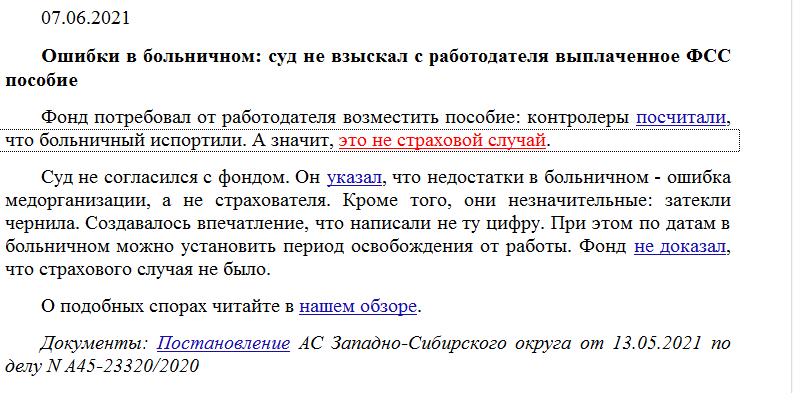 Ошибка в больничном: суд не взыскал с работодателя выплаченное ФСС пособие.