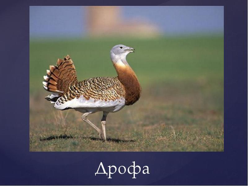Дрофы очень красивые, кстати, их ещё называют "дудак", а ещё она является родственницей страуса. Птенцы дрофы сразу после появления на свет умеют бегать, могут взлететь, но делают это крайне неловко. Интересно было бы посмотреть?