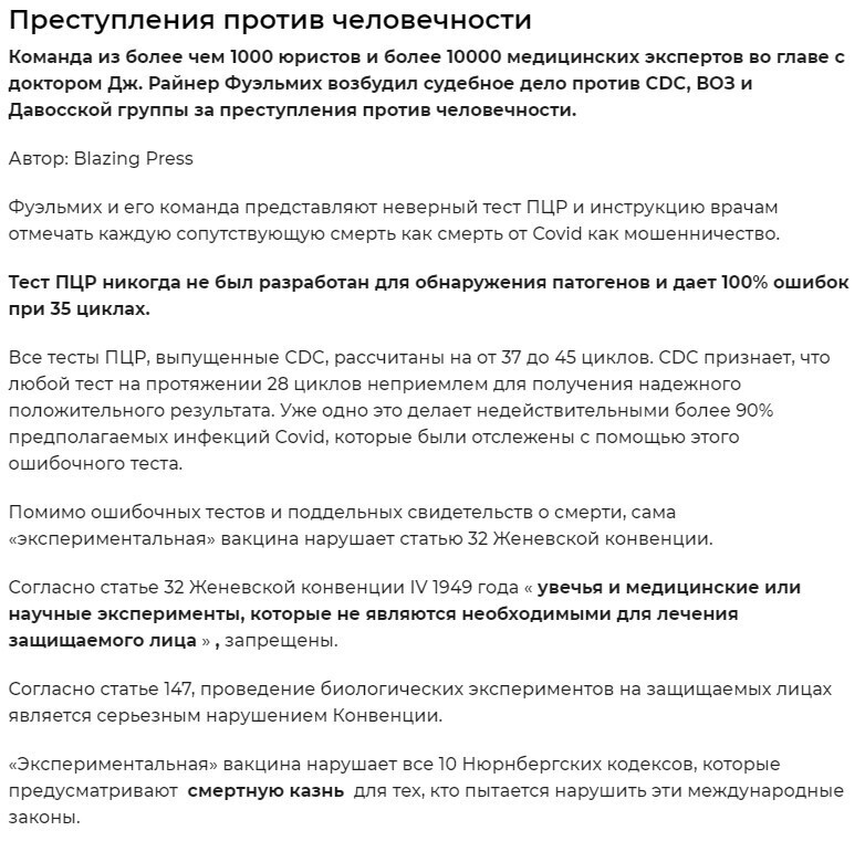 "Обязательная вакцинация против COVID" - преступление против человечества.