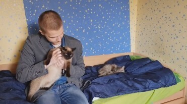 Когда у него кончалась еда, он не ждал, а шёл прямо ко мне и просил. А по ночам, он зачем-то охотился за ногами, из-за чего я постоянно откладывал кирпичи. Также, видимо, из-за большого интеллекта, он неоднократно спрыгивал с балкона.