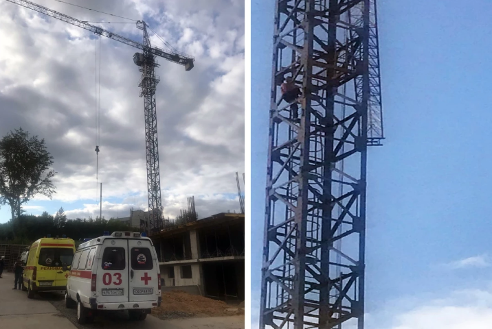 Мужчина кричал с крана, привлекая к себе внимание