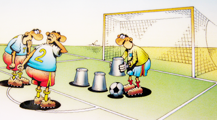 -Ноги футболисту даны не для того, чтобы он ими падал!