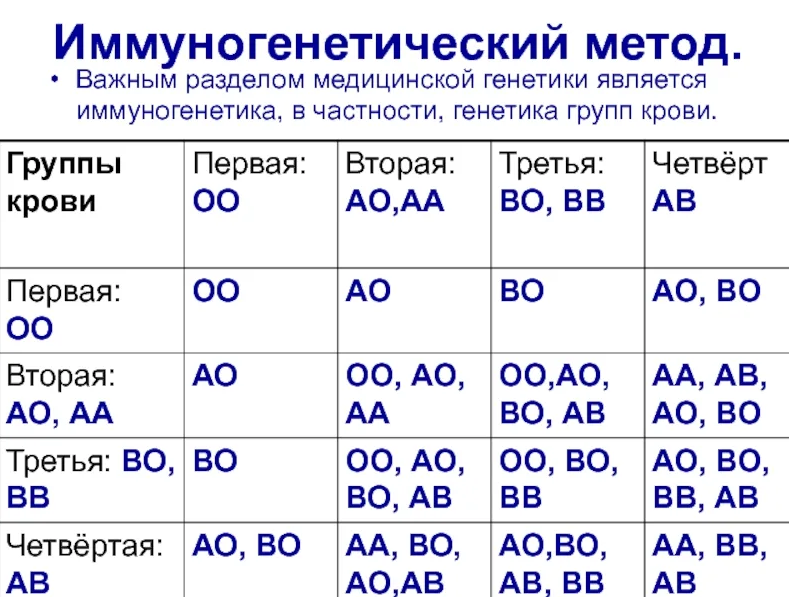 Но для пары с группами крови 1-3, возможны только варианты 1 и 3, а 2-я полностью исключена! Удивительно ещё, что мать ребёнка знала основы генетики, а так бы спокойно воспитывала "чужого ребёнка", считая его полностью своим!