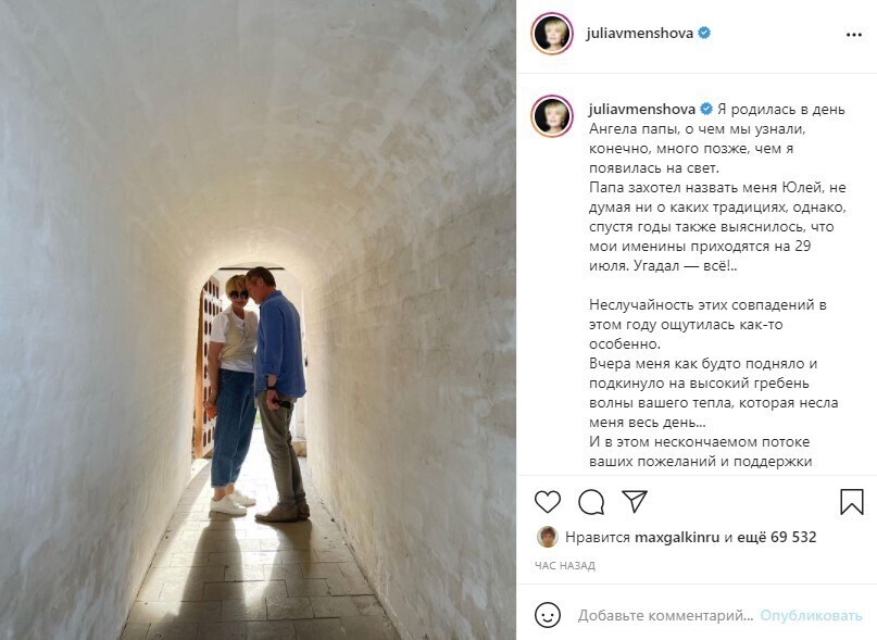 По словам Юлии, «неслучайность» этих совпадений она особенно ощутила в этом году. Артистка призналась, что накануне ее будто подкинуло на высокий гребень волны тепла, исходящего от подписчиков. В этот момент она также почувствовала присутствие покойного отца.