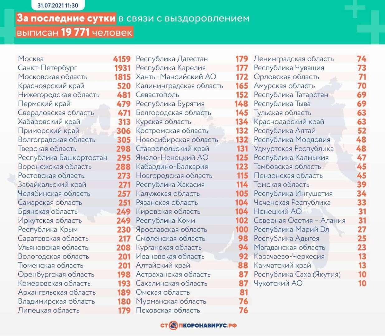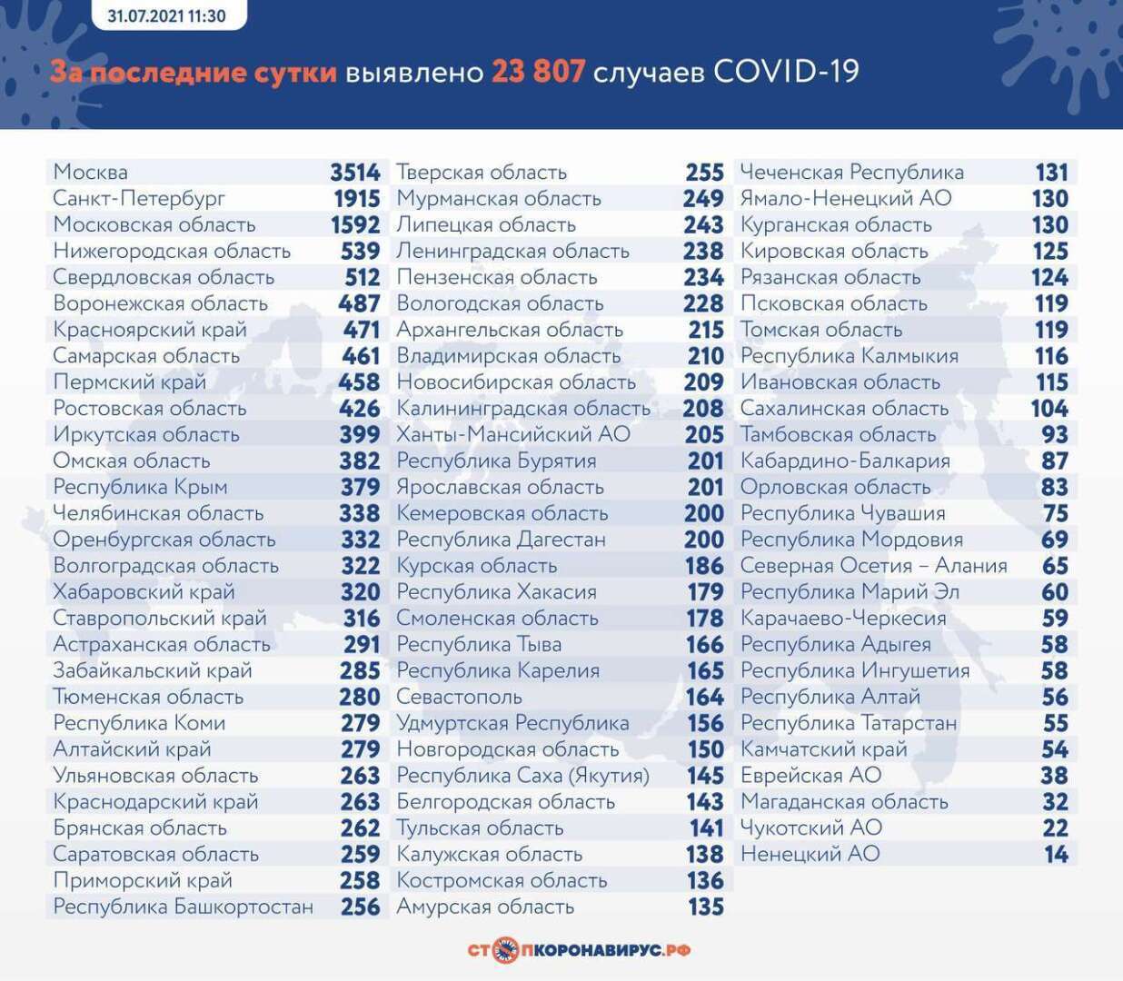 Статистика коронавируса в России на 1 августа 2021 года