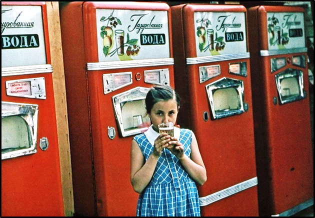 А кто не помнит из своего Советского детства автоматы по продаже газировки, 1 коп без газа, и 3 копейки с сиропом, сколько не пробовал современных лимонадов, все равно тот из детства самый вкусный. Стакан был многоразовый, его после использования мыли, переворачивая, давя на донышко, за счёт своих граней и стойкости стекла этот стакан практически был «вечным в «эксплуатации».