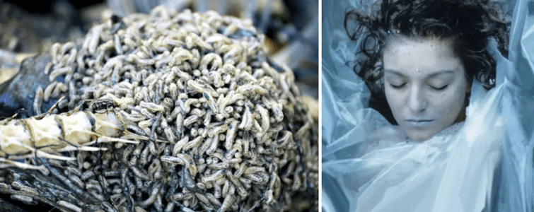После смерти человека разлагающееся тело начинает привлекать определённых насекомых. Судебные энтомологи могут определить время и причину смерти, основываясь на стадиях развития личинок, поведении насекомых и многом другом.