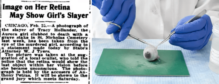 Вплоть до 20-го века следователи анализировали глаза жертв, чтобы попытаться найти изображение убийц, которое по их теории должно было оставаться где-то в глазном яблоке. Сегодня мы знаем, что это невозможно.