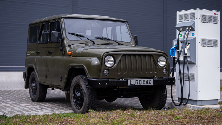 В Европе начались продажи электрокара УАЗ Hunter. 40 тысяч евро – столько стоит российский внедорожник в исполнении чешской MW Motors, которая и "наэлектризовала" его, поменяв, кстати, и шильдик на решетке с "Охотника" на Spartan.