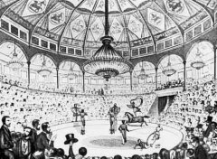В 1770 году, вернувшись с военной службы, отставной старший сержант 15-го полка легких драгун Филип Астлей основал в Лондоне школу верховой езды. Он стал демонстрировать мастерство наездников. Ставились конные представления. Вскоре для этих спортивно-акробатических зрелищ было построено специальное здание, получившее название «Амфитеатр Астли». Здание имело куполообразную крышу, круглый зрительный зал, манеж, оркестр и сцену.