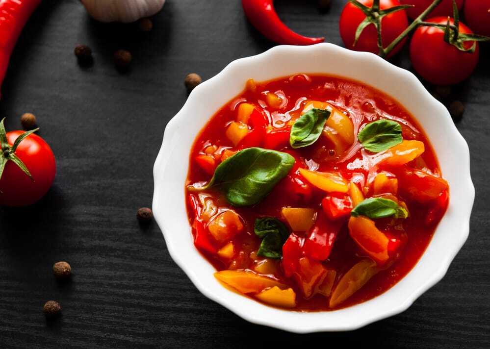 Подготовить банки для консервирования. Для стерилизации используйте любой удобный для вас способ (над паром, в духовке или микроволновой печи). Металлические крышки залить кипящей водой на несколько минут. Горячую овощную закуску разложить по подготовленным банкам и герметично закрыть металлическими крышками. Перевернуть банки вверх дном и накрыть пледом. Оставить их до полного остывания, после чего перенести в место для хранения.
