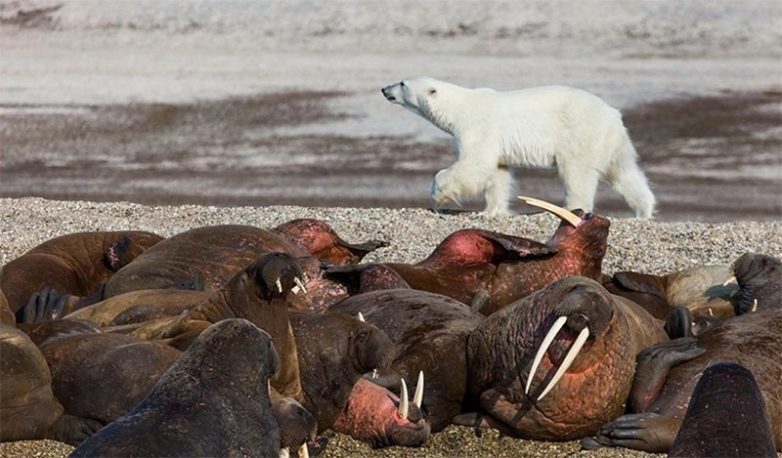 Учёные считаю, что полярные медведи находится по интеллектуальному уровню развития на одной ступени с приматами. Благодаря суровому климату Арктики, косолапым то и дело приходиться включать свою смекалку или избирательность, иначе можно и голодным остаться...