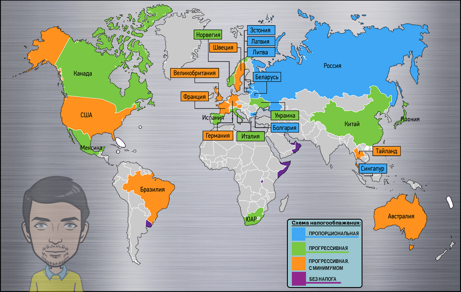 В большинстве развитых стран используется прогрессивная шкала расчёта подоходного налога.